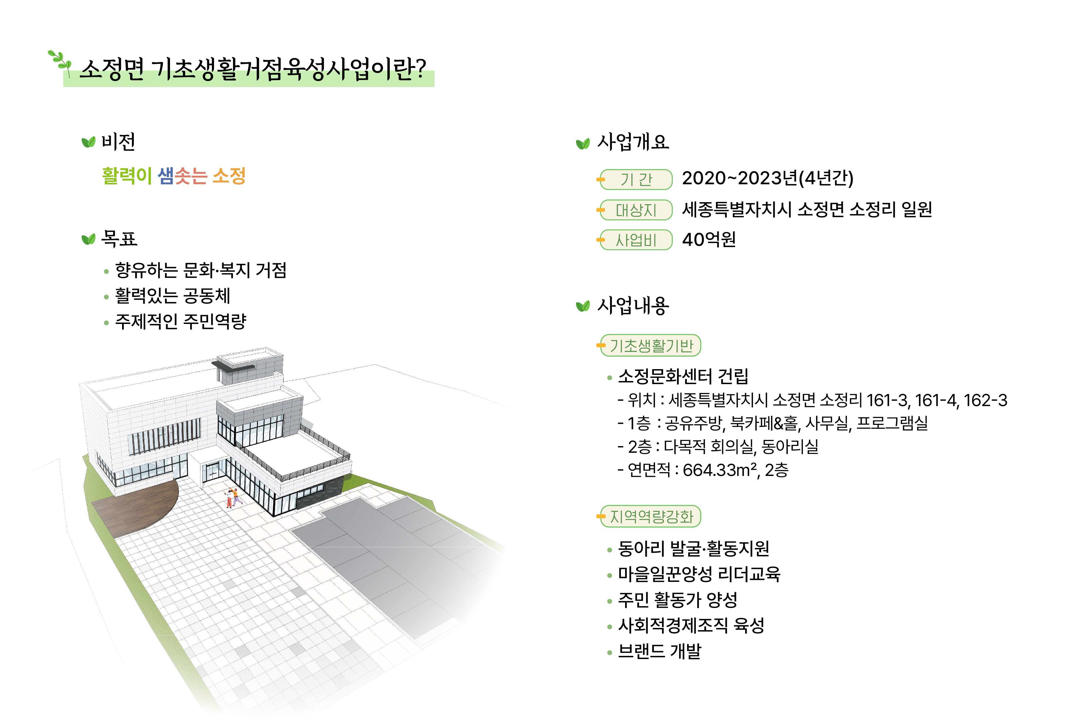 소정면 주민들이 삶의 이야기를 함께 공유하며 살아갈 수 있는 문화ㆍ공동체 활성화 거점을 조성